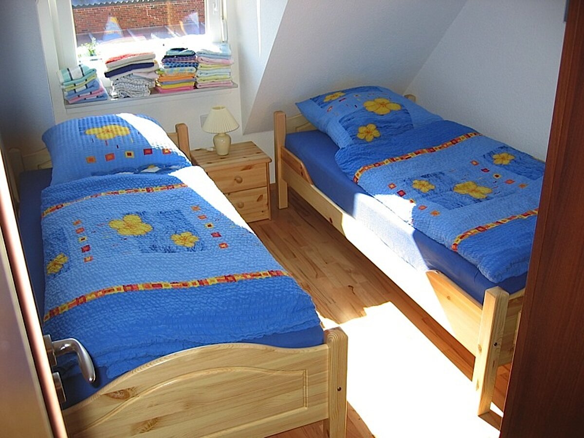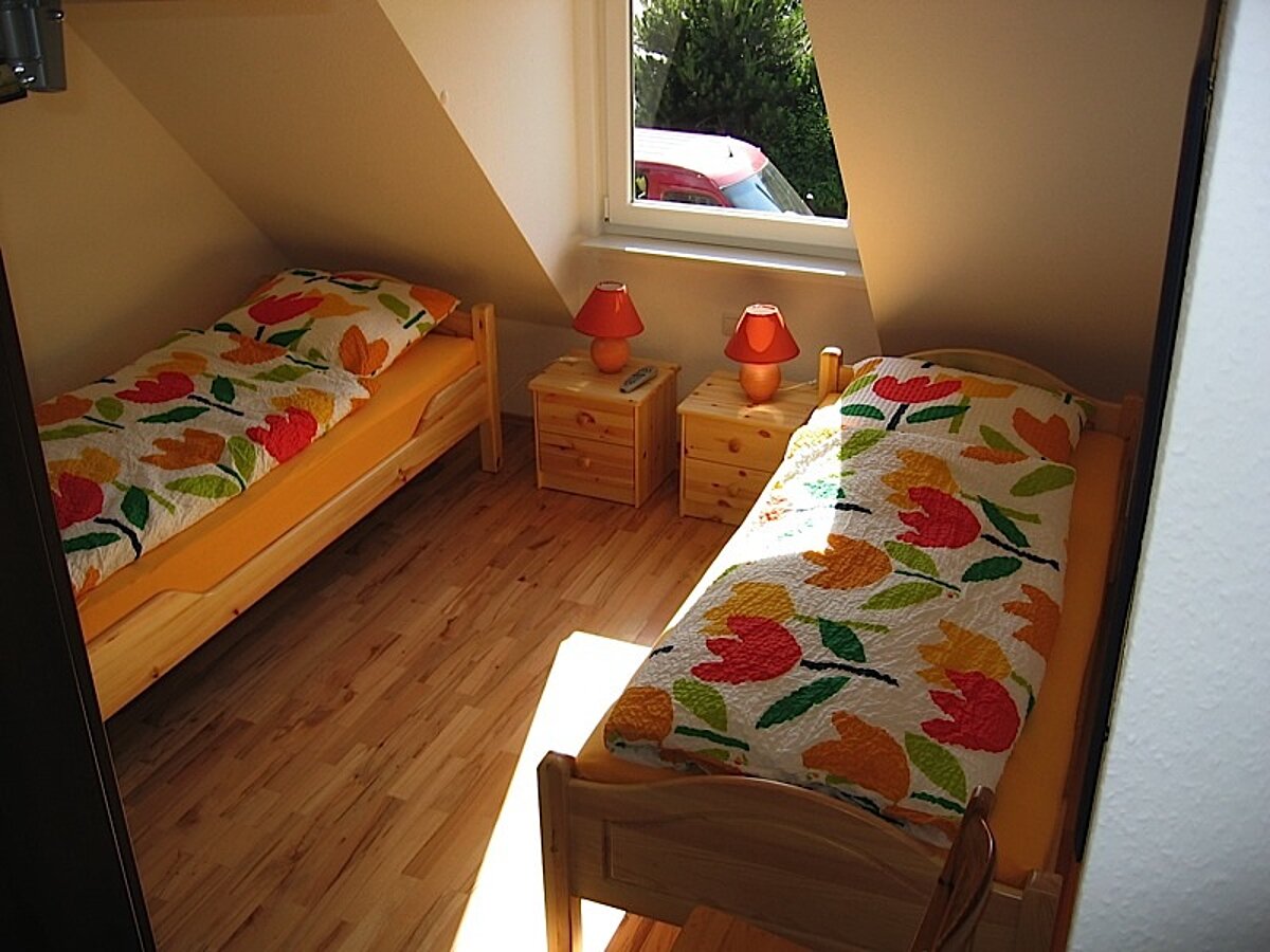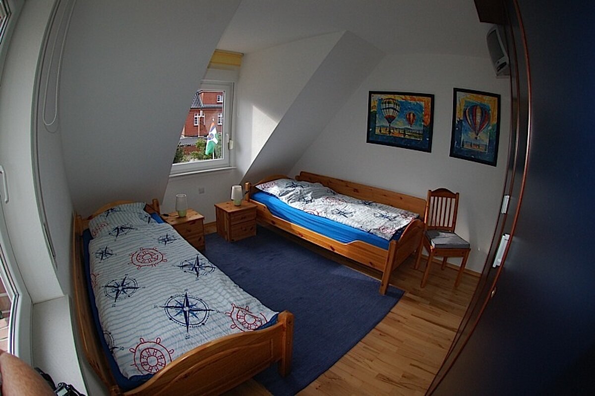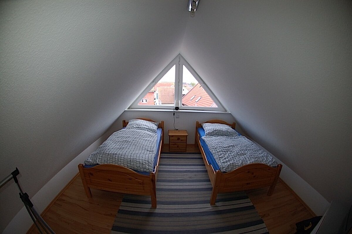 Ein weiteres Schlafzimmer mit zwei Einzelbetten finden Sie im perfekt ausgebauten Dachboden. Für den entspannten Abend befindet sich auch in diesem Zimmer ein eigener Fernseher.